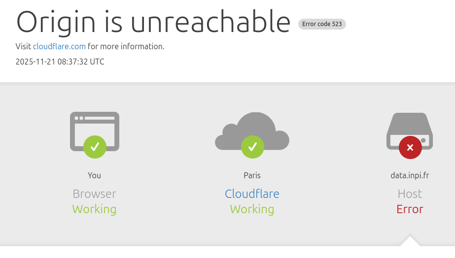 Je suis venu ici exactement pour ça. Je pensais être fou mais ça me rassure de ne pas être le seul. J’ai mis un timeout de 3 secondes entre chaque appel pour des documents et après à peu près une dizaine de téléchargements j’ai un 429 jusqu’au lendemain. Quelqu’un sait ? Un moyen de contacter l’INPI ? J’ai essayé Twitter mais ça n’a pas répondu.